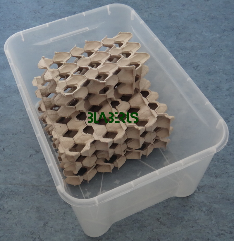 | konstrukce modulu | prokladky nařezané v potřebných velikostech se spojí tavnou pistolí a vloží do bedny tak, aby vzniklé tunýlky směřovaly ode dna vzhůru a na ně kolmé k volnému prostoru nad miskami a tím byl zajištěn maximální tok vzduchu v kolonii a propadání exkrementů na dno, případně i s uříznutými vnějšími vršky pro lepší odvětrávání ubikace | |